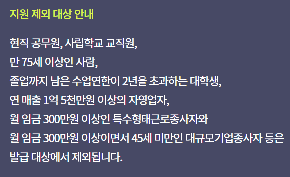 우선 우리나라 국민이라면 누구나 신청이 가능합니다. 단, 내일배움카드 지원 제외 대상이 있습니다.