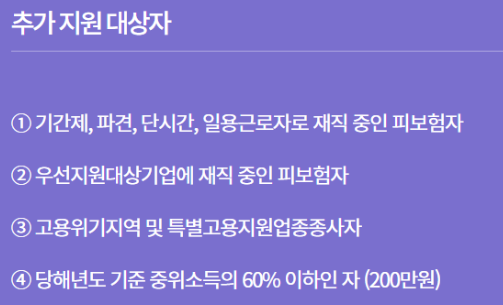 100~200만원의 추가 지원을 받는 대상자는 아래와 같고 이 경우에는 최대 500만원까지 지원받습니다.