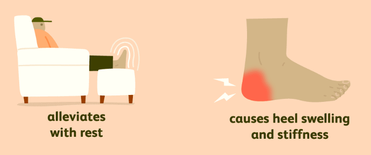 이것은 주로 다리 뒤쪽이나 발뒤꿈치 바로 위의 통증을 유발하지만 때때로 발의 발바닥 부위까지 불편함이 확장될 수 있습니다.