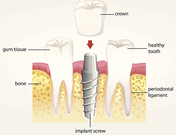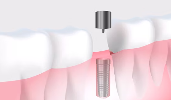 2단계 - 수술: 치과 의사는 뼈에 구멍을 내어 임플란트를 삽입합니다. 그 후, 뼈와 임플란트가 잘 결합되도록 일정 기간 동안 치유를 기다립니다.
