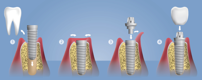3단계 - 임시 크라운 설치: 치유 과정 이후, 임시 치아(임시 크라운)를 임플란트에 부착합니다. 이 단계는 뼈와 임플란트가 완전히 결합될 때까지 대기하며, 환자는 정상적인 식사와 말하기를 할 수 있습니다.