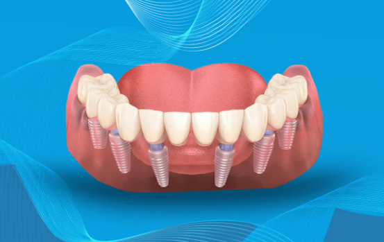 전체 턱 임플란트: 틀니를 대체하거나 전체 턱의 치아를 지원합니다.