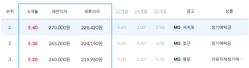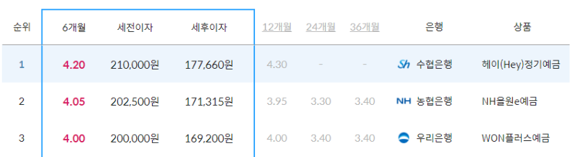 정기예금 이율높은곳 (6개월 1금융권 기준)
