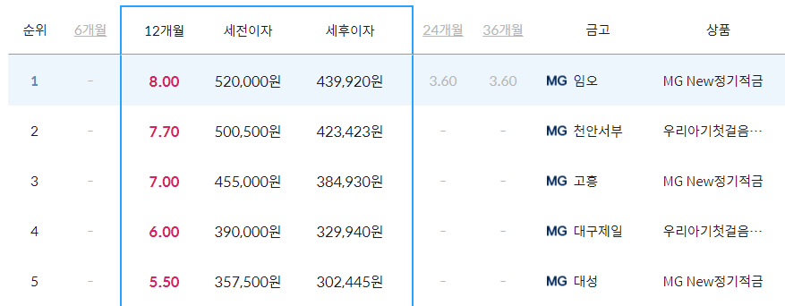 - MG천안서부 - 우리아이첫걸음적금 (7.70%)