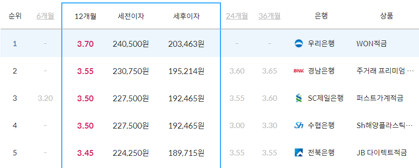 정기적금에 앞서 은행별 예금금리 순위와, 저축은행 실시간 특판상품, 지역별 새마을금고 금리 정보가 궁금하시다면 아래의 글을 참고하시기 바랍니다.