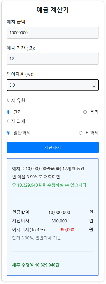 ✅ 세전 및 세후 이자 계산