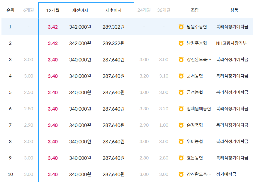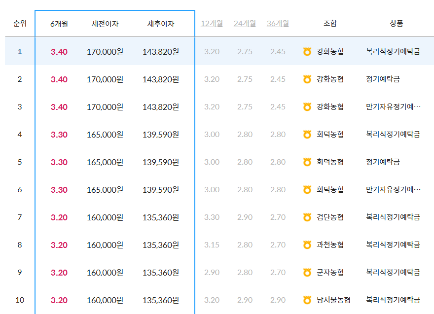 2. 농협 정기예금 금리 비교