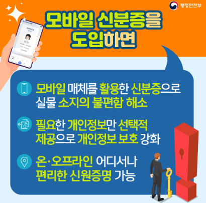 상대방이 필요한 정보만 제공할 수 있어 과도한 개인정보 노출을 방지할 수 있는 장점이 있습니다. 안전성 확보를 위해 다양한 보안기술이 적용되었습니다. 본인 명의 1개 단말기에만 발급이 됩니다. 발급방법은 가장 높은 수준의 신뢰성을 확보하기 위해 가까운 운전면허시험장 혹은 경찰서의 민원실을 방문해 신원확인을 대면으로 거친 후 발급이 가능합니다.