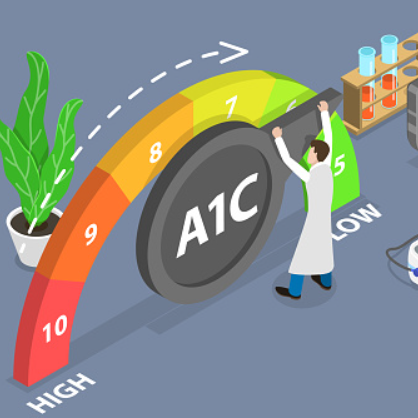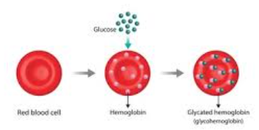 혈액 내 산소 운반 역할을 하는 적혈구 속 헤모글로빈(혈색소)과 혈중 포도당이 결합한 형태를 당화혈색소라고 합니다. 쉽게 말해, 우리 몸의 혈당이 높은 상태가 지속되면 적혈구 내 헤모글로빈이 포도당과 결합하게 되는데, 이렇게 변화된 헤모글로빈의 비율을 백분율로 나타낸 것입니다.